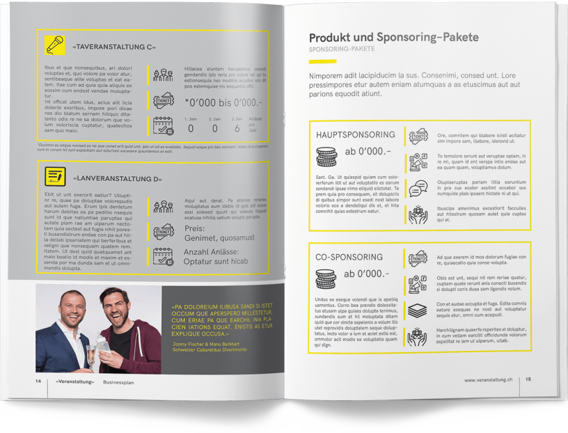Zweck Businessplan Der Businessplan wurde erstellt, um Sponsoren und Partner zu gewinnen. Die Herausforderung bestand darin, geeignete Sponsoring- und Produktangebote zu definieren, um die wirtschaftliche Tragbarkeit des Vorhabens zu gewährleisten.