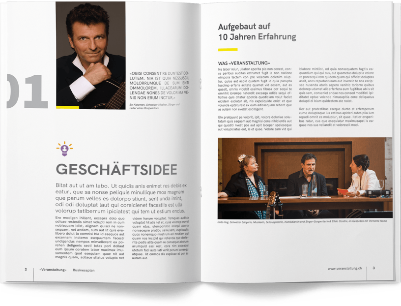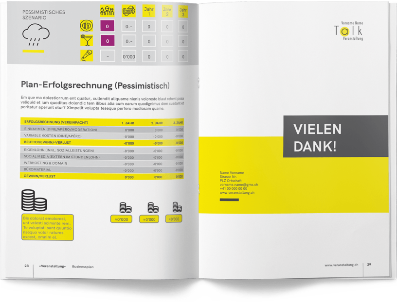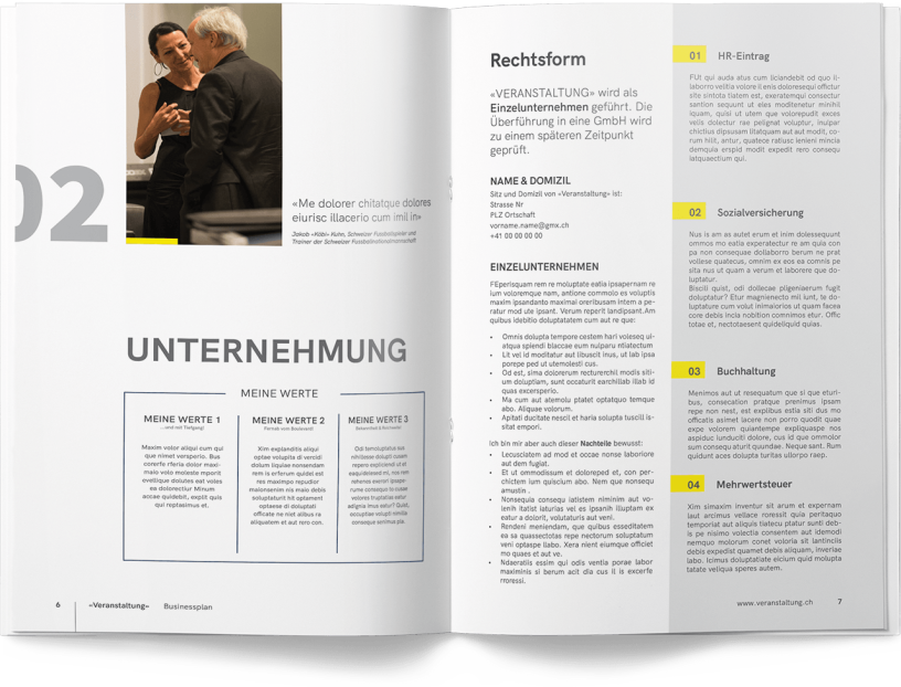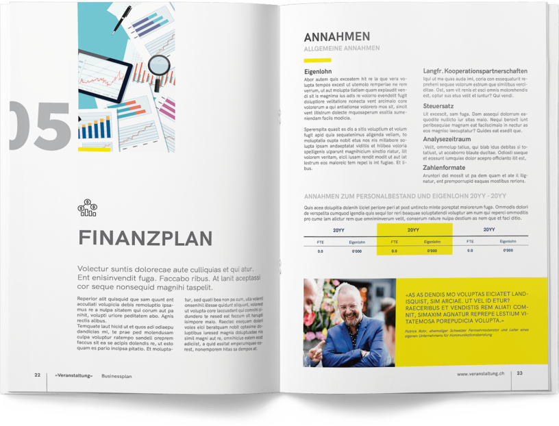 Kundenfeedback «Ich danke Patrick herzlich für sein herausragendes Engagement. Der Businessplan ist optisch beeindruckend, authentisch und inspirierend für meine berufliche Weiterentwicklung. Seine feinfühlige und realistische Umsetzung meiner Wünsche hat mich überzeugt. Ich empfehle Patrick wärmstens weiter.» S. W. Gründerin und Geschäftsführerin